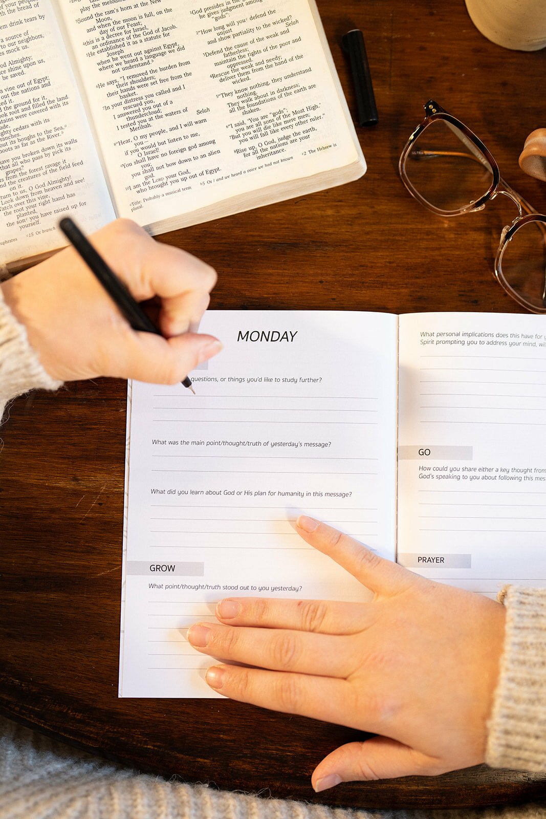 Following our Know, Grow, Go study method, SundayMonday offers you a double page spread each week for sermon notes, followed by a double page spread for your personal study, reflection, and application.